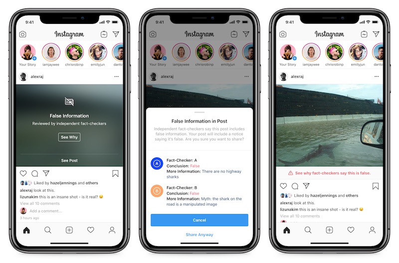 ,当帖文中出现被体系认定为是虚伪音讯的相片或视频时,使用就会显现正告,用户可选择持续检查原贴或了解内容为何是虚伪的。